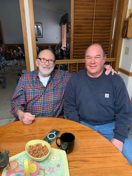 Bob's son Tim with Uncle Russ, at Russ and Karen's house in Urbandale, Iowa.
